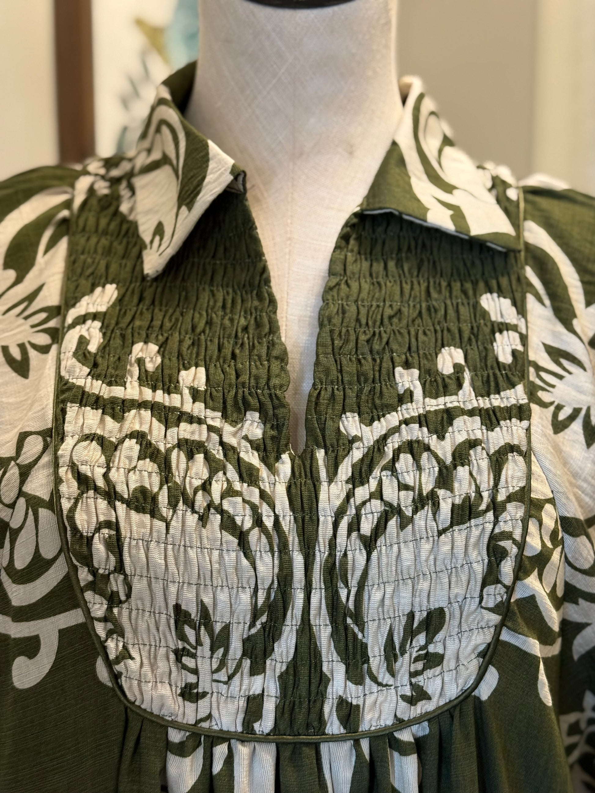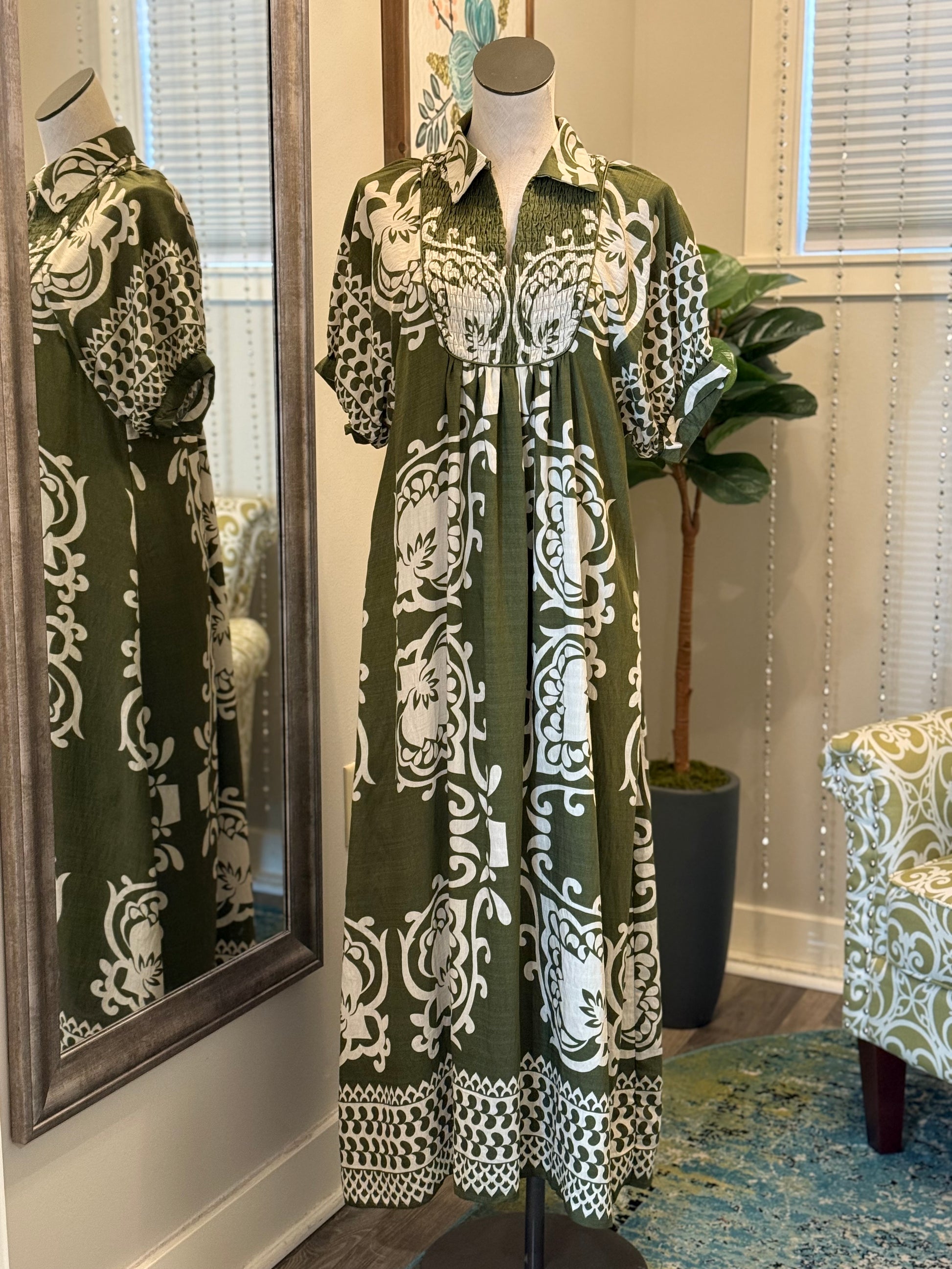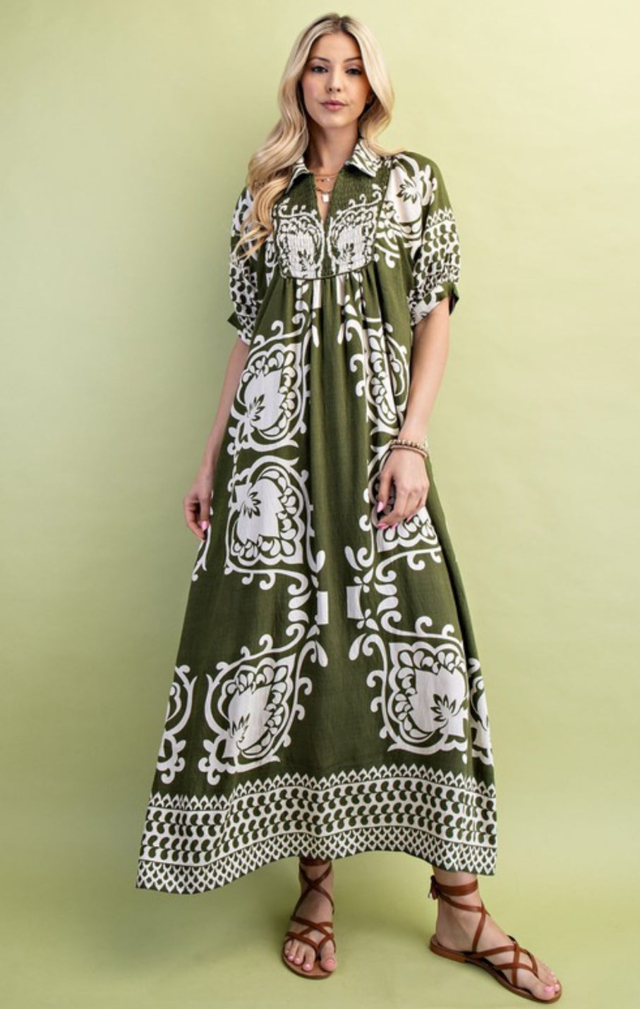 Mixed Print Short Puff Sleeve Maxi Dress.