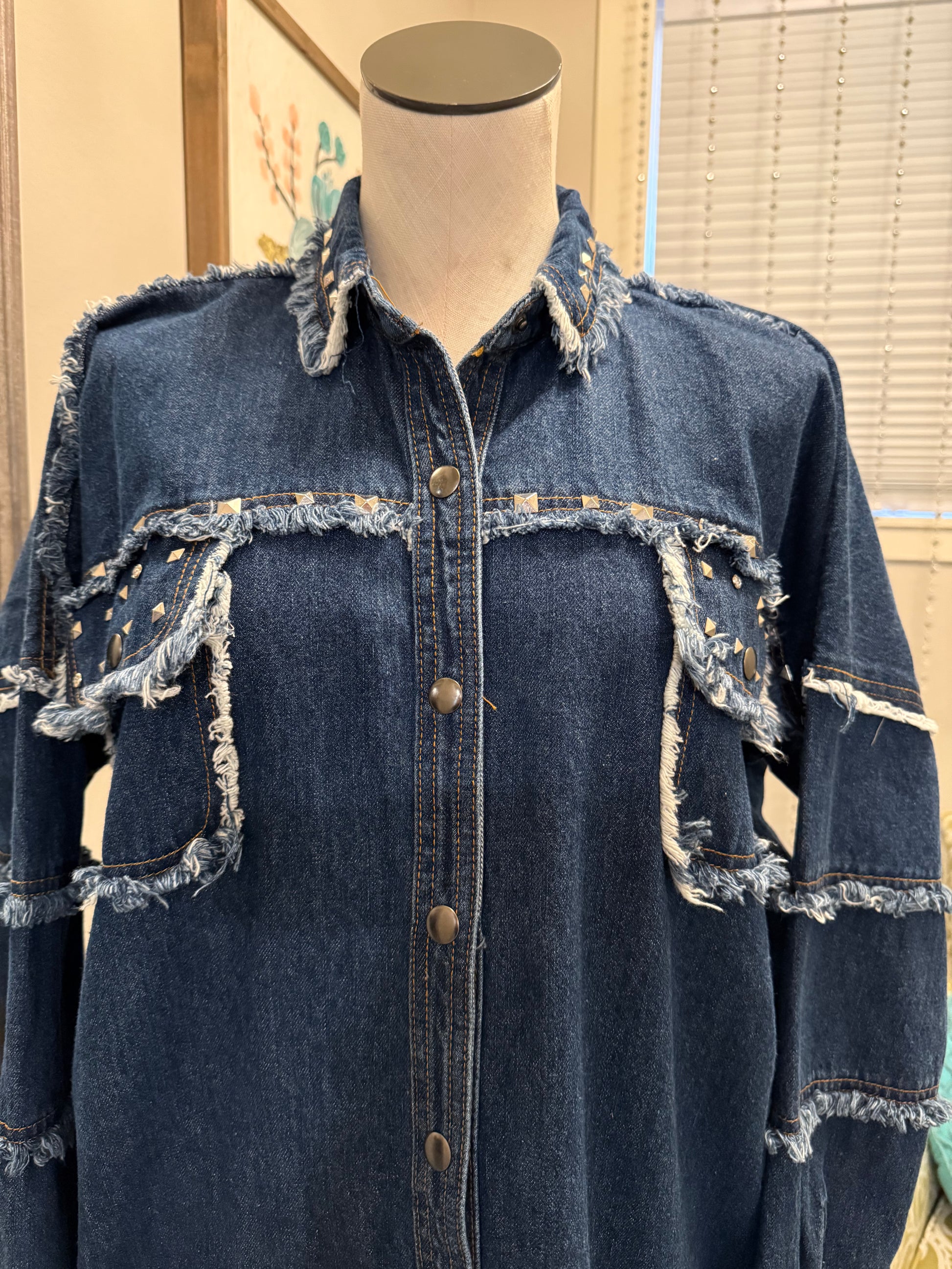 Women's Long Sleeve Button Closure, Stud Detailed Denim Jacket