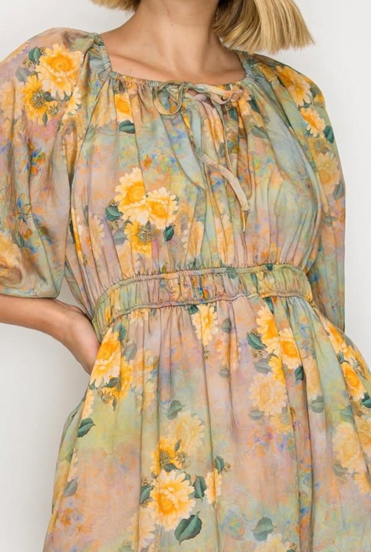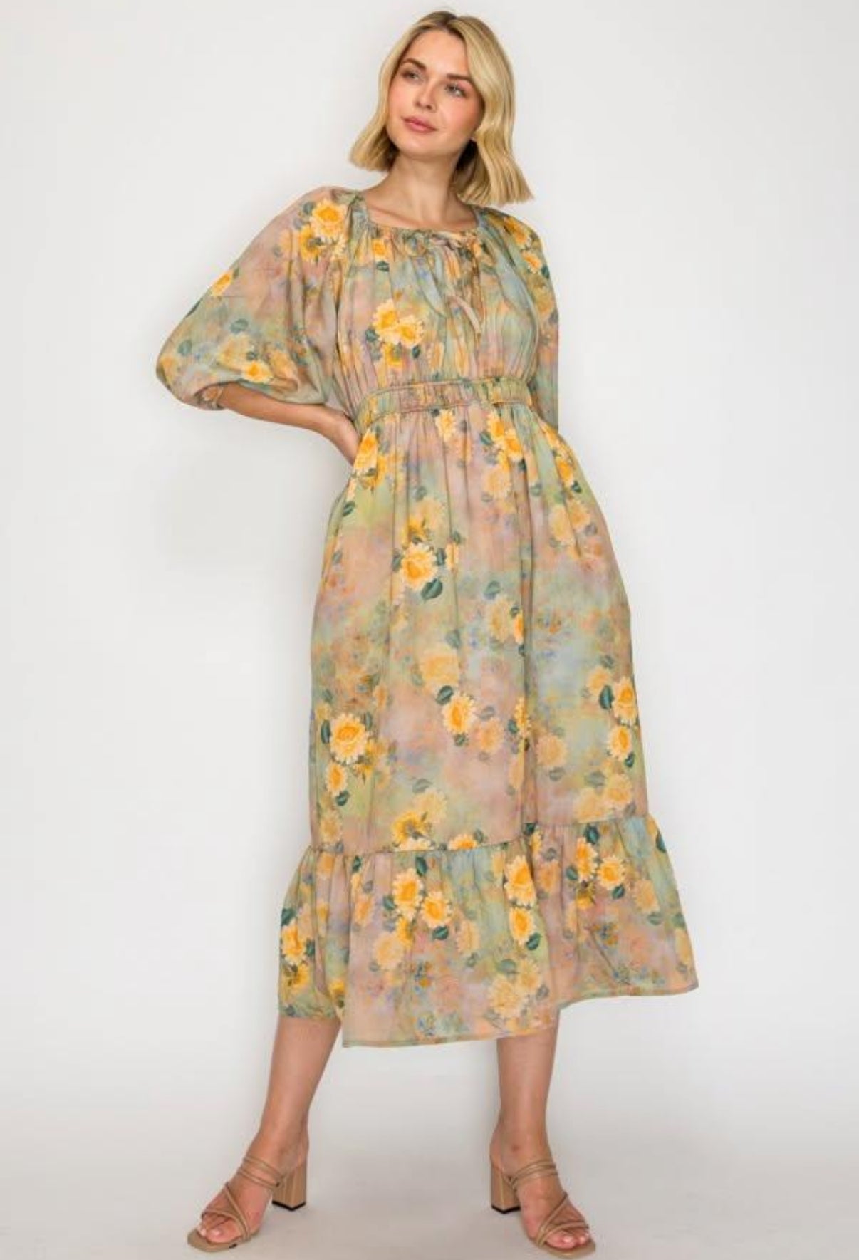 Square Neck Midi Dress with 3/4 Length Sleeves.